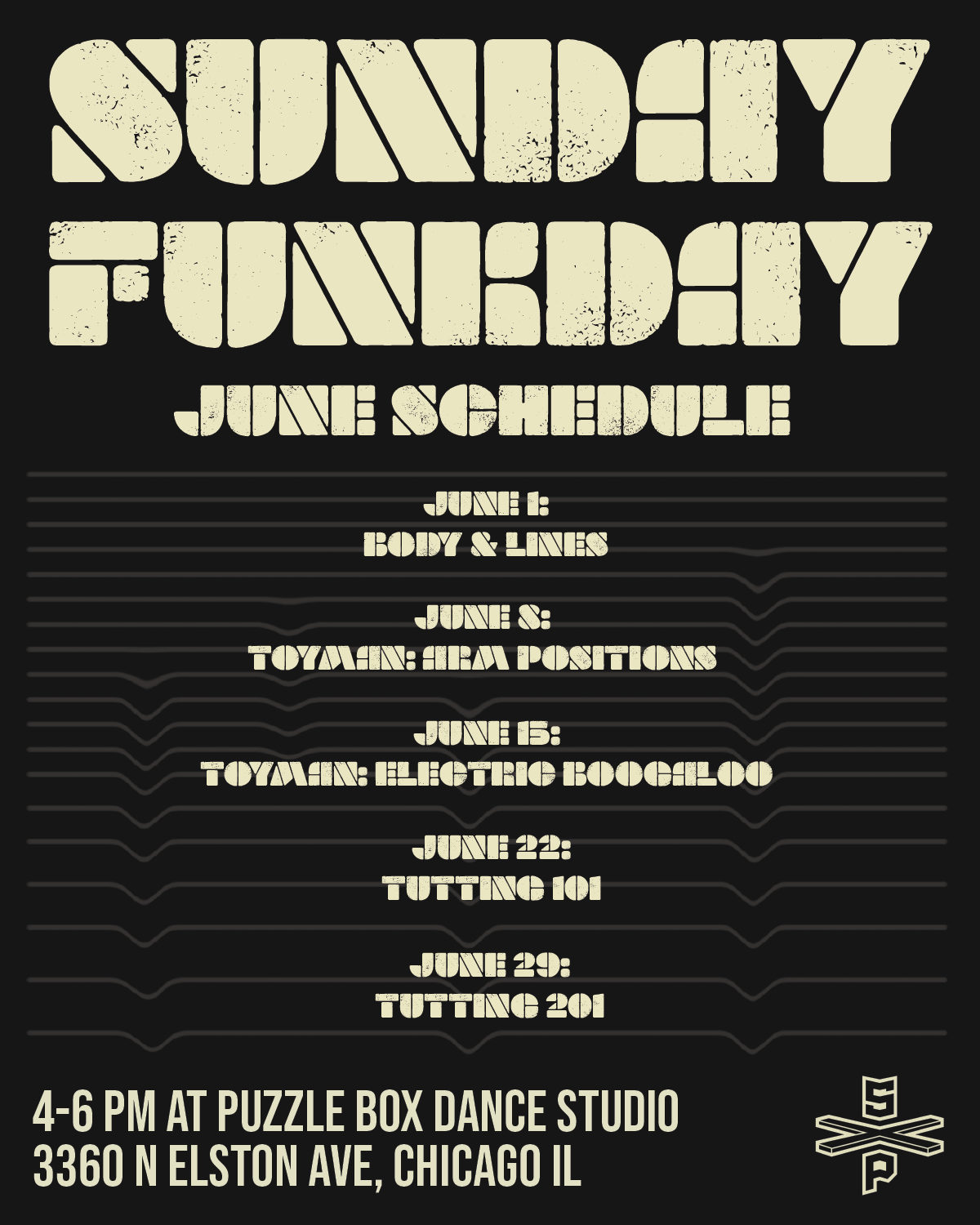 Sunday Funkday Sunday, June 8, 2025 4:00 PM 6:00 PM The Puzzle Box 3360 North Elston Avenue Chicago, IL, 60618 United States (map) Google Calendar ICS