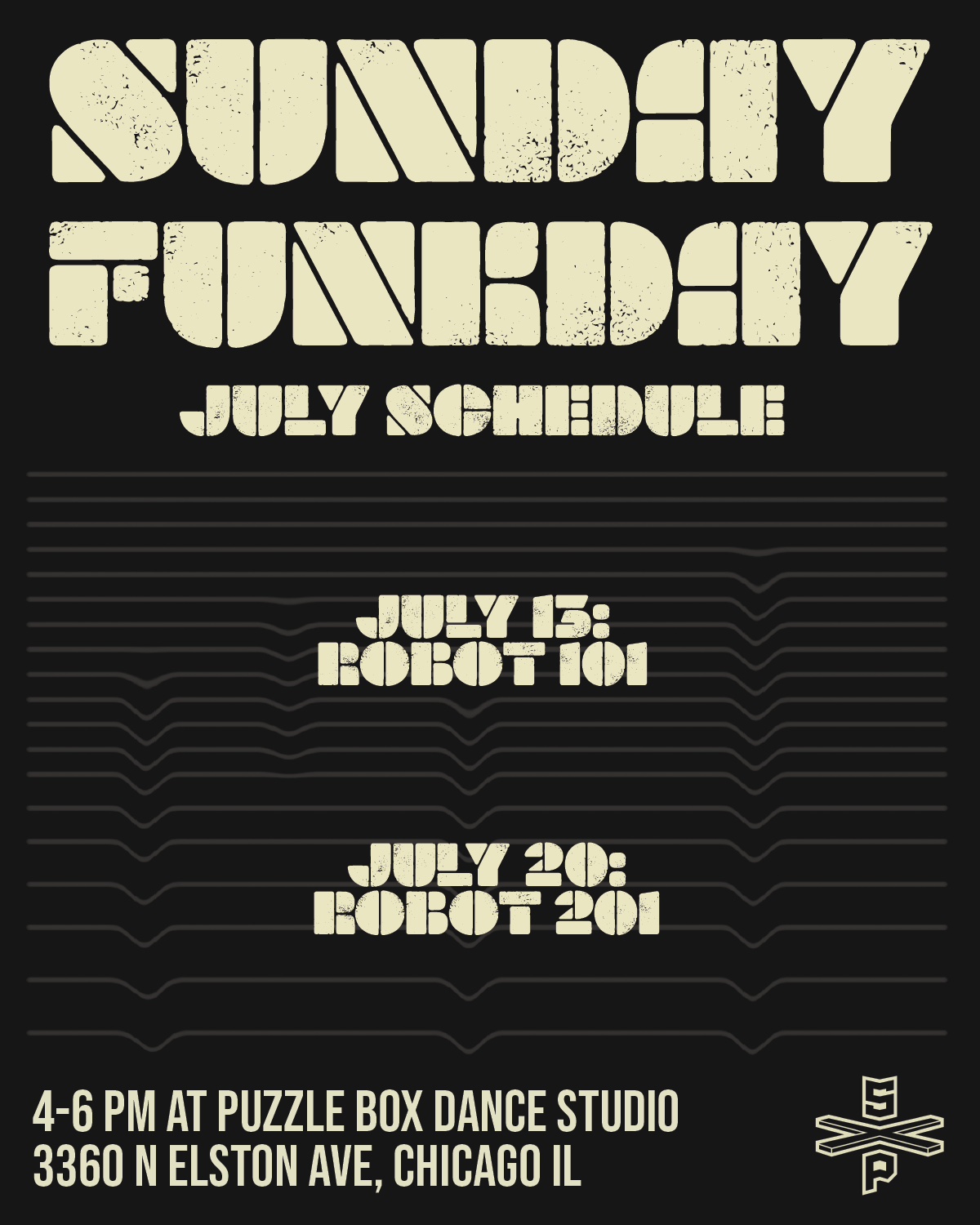 Sunday Funkday Sunday, July 20, 2025 4:00 PM 6:00 PM The Puzzle Box 3360 North Elston Avenue Chicago, IL, 60618 United States (map) Google Calendar ICS